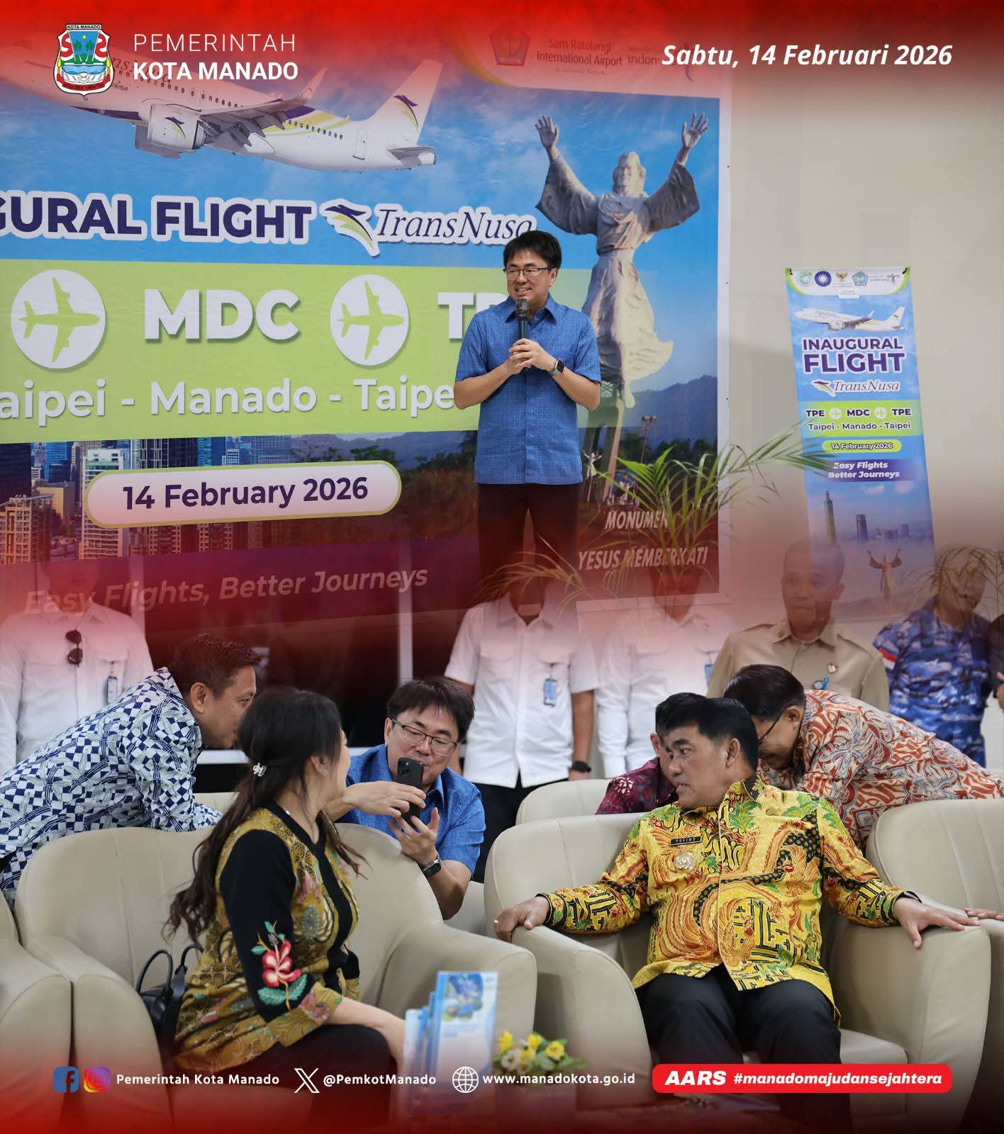 Berkaitan dengan hal di atas Wali Kota Manado, Andrei Angouw, menghadiri kegiatan Penerbangan Perdana (Inaugural Flight) maskapai TransNusa dengan rute internasional Taipei–Manado–Taipei, yang dilaksanakan di Bandara Internasional Sam Ratulangi Manado.
